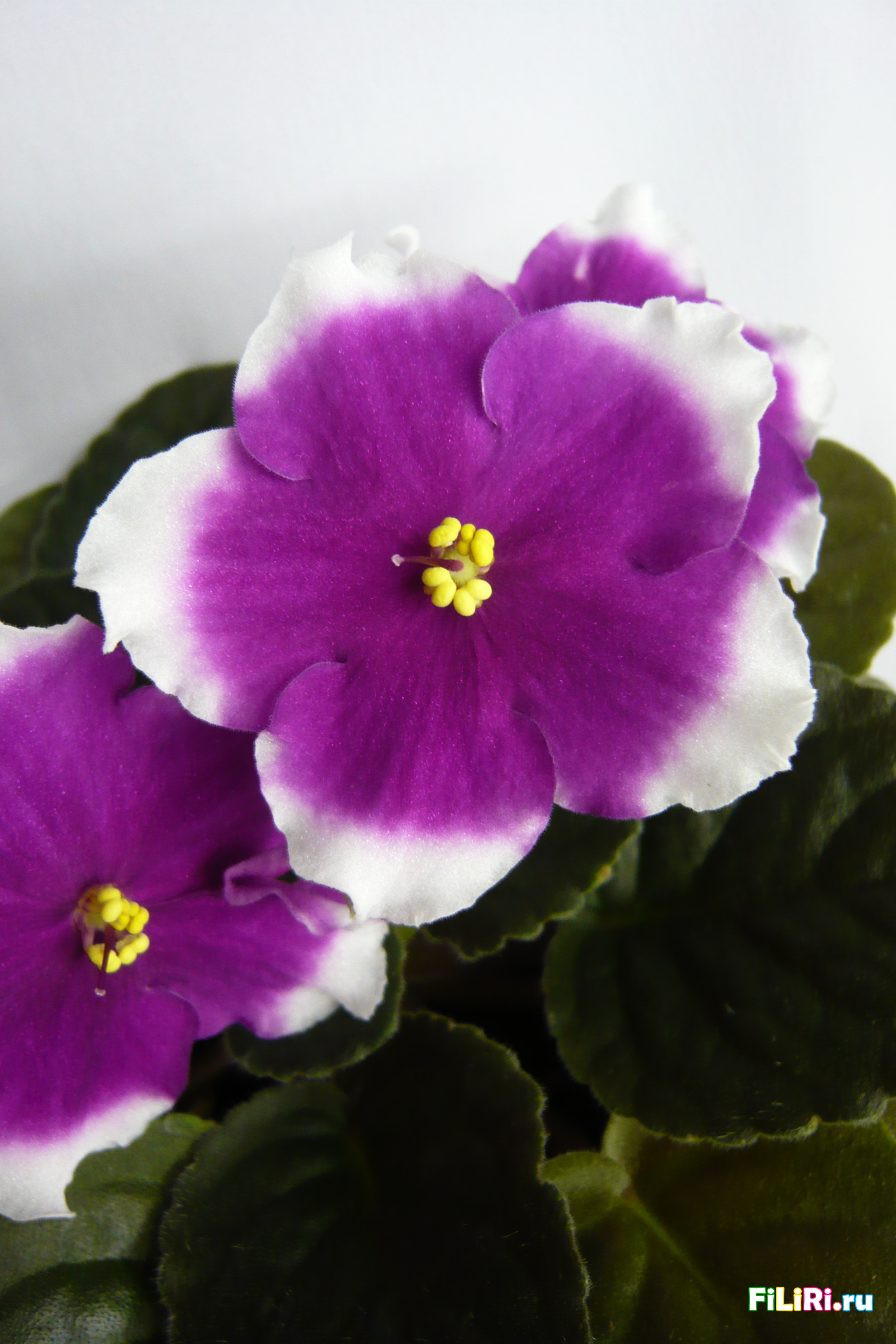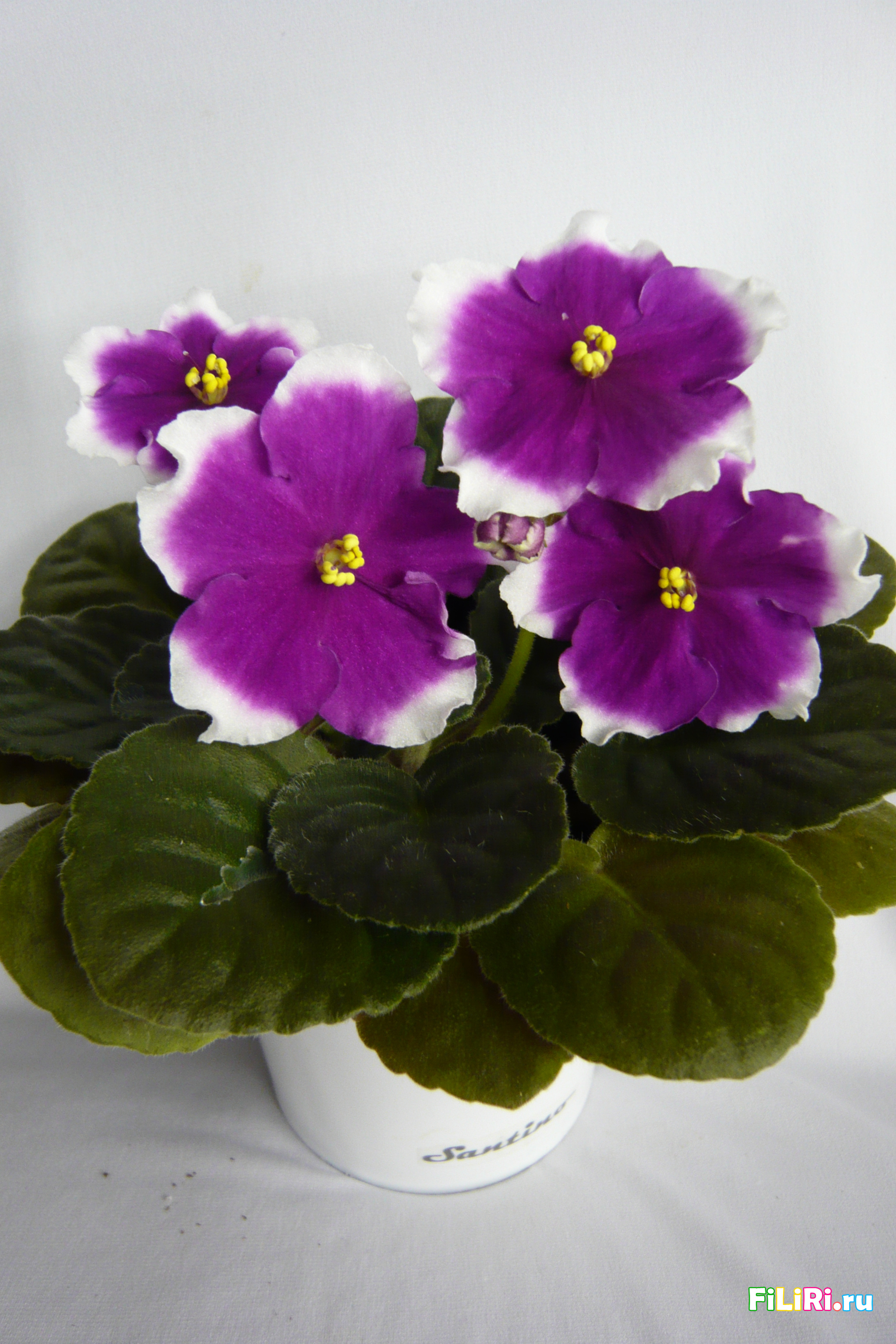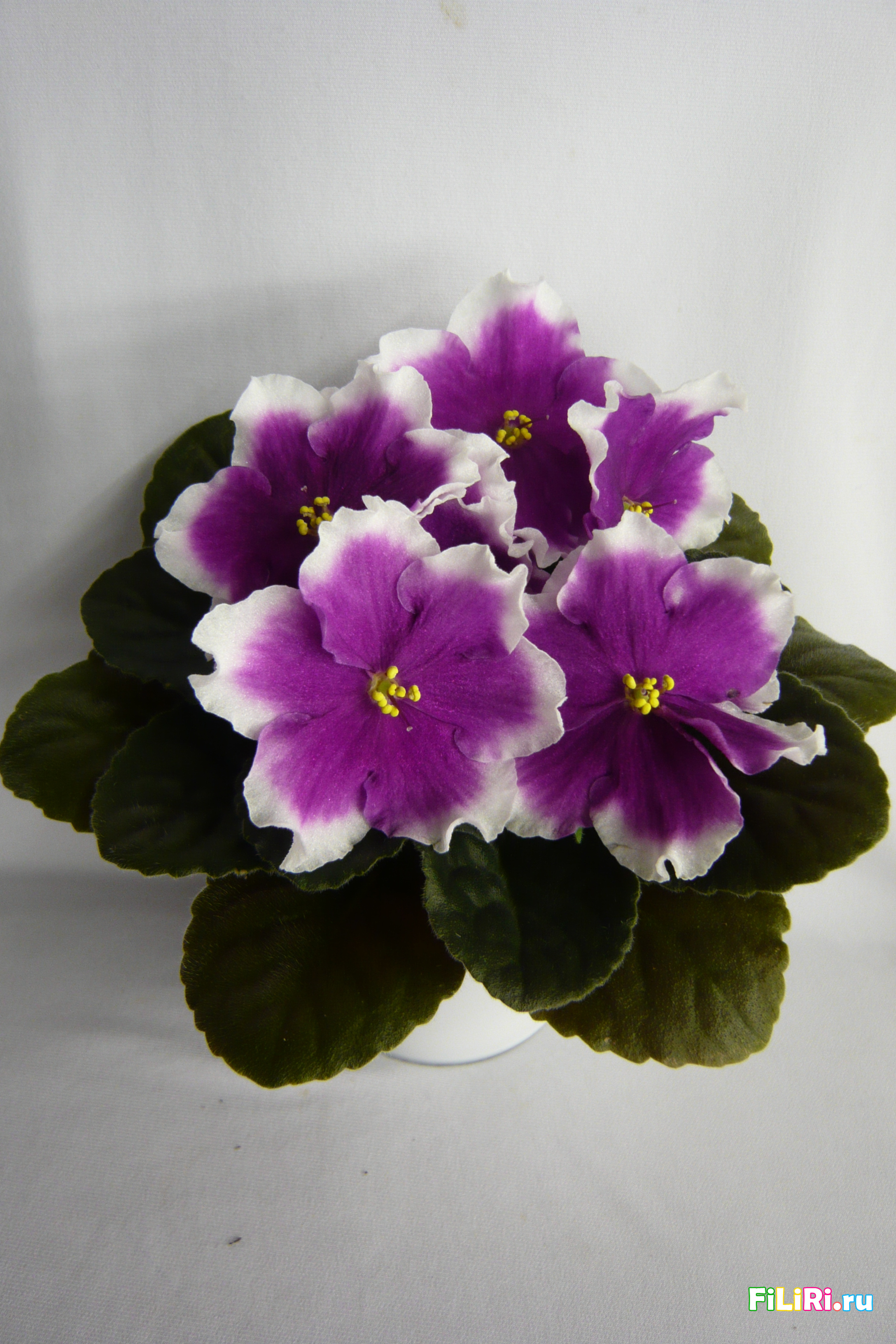 Очень крупные, волнистые звезды, серединка светло-малиновая, а за ней белое кольцо. Крупная оливковая листва. Пышная шапка, удивительно красиво!